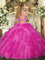 Home >  Quinceanera Dresses >  Luxurious Quinceanera Dresses > Wonderful Floor Length Two Pieces Sleeveless Fuchsia 15th Birthday Dress Criss Cross