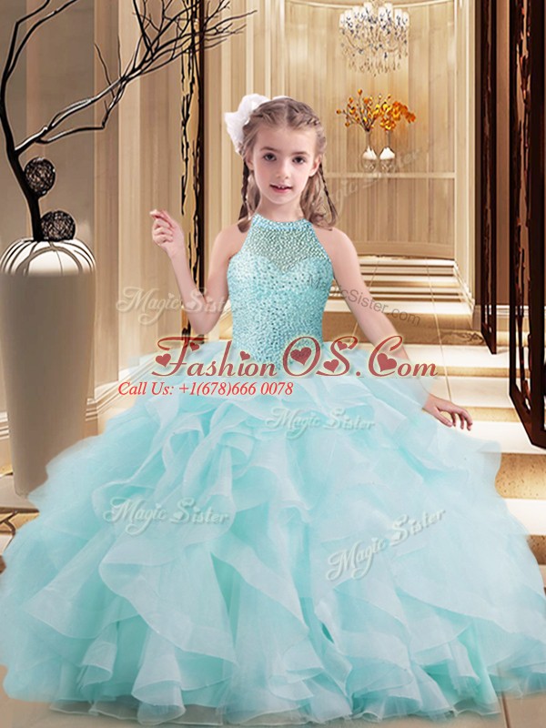 Home >  Special Occasion Dresses >  Pretty Little Girl Pageant Dresses > Wonderful Light Blue Little Girls Pageant Dress Wholesale Tulle Brush Train Sleeveless Beading and Ruffles