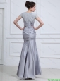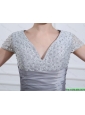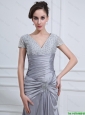 Wonderful Mermaid V Neck Prom Dresses with Beading in Silver