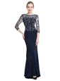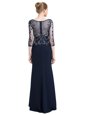 Wonderful Navy Blue 3|4 Length Sleeve Chiffon Zipper Mother Of The Bride Dress for Prom and Party