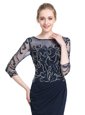 Home >  Special Occasion Dresses >  Mother of the Bride Dresses > Wonderful Navy Blue 3|4 Length Sleeve Chiffon Zipper Mother Of The Bride Dress for Prom and Party