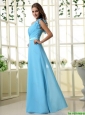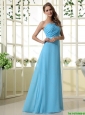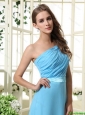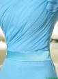Wonderful One Shoulder Belt and Ruffles Aqua Blue Long Prom Dresses
