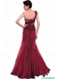 Wonderful One Shoulder Wine Red Prom Dresses with Beading for 2016