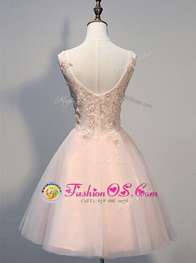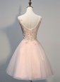 Wonderful Peach Sleeveless Beading and Appliques Knee Length Dress for Prom