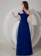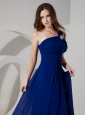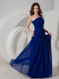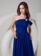 Home >  Evening Dresses > Wonderful Peacock Blue Evening Dress Empire One Shoulder Chiffon Ruch Floor-length