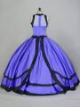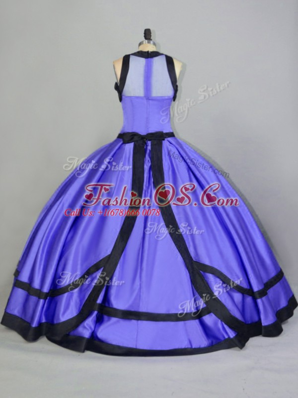 Wonderful Purple Satin Zipper Scoop Sleeveless Floor Length Quinceanera Gown Ruching