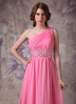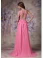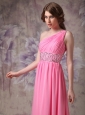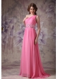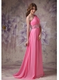 Home >  Prom Dresses >  Best Prom Dresses > Wonderful Rose Pink Empire One Shoulder Prom Dress Chiffon Ruch And Beading Brush Train