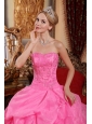 Wonderful Rose Pink Quinceanera Dress Strapless Organza Appliques Ball Gown