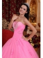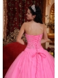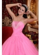 Wonderful Rose Pink Quinceanera Dress Strapless Tulle Beading Ball Gown