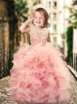 Wonderful Ruffled and Laced Flower Girl Pageant Dress with See Through Scoop