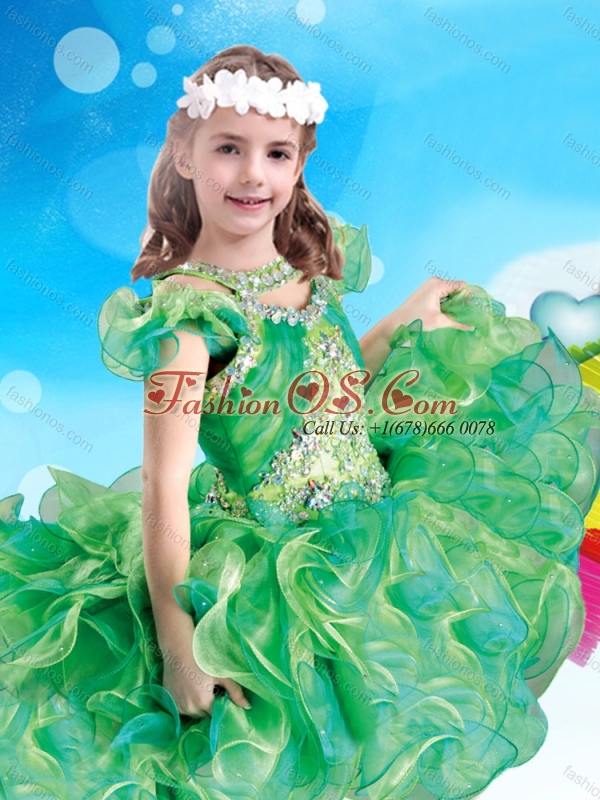 Home >  Special Occasion Dresses >  Mini Quinceanera Dresses > Wonderful Scoop Green Little Girl Mini Quinceanera Dress with Beading and Ruffles