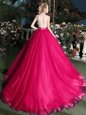Wonderful Scoop Hot Pink Sleeveless Appliques and Belt Zipper Quinceanera Gown