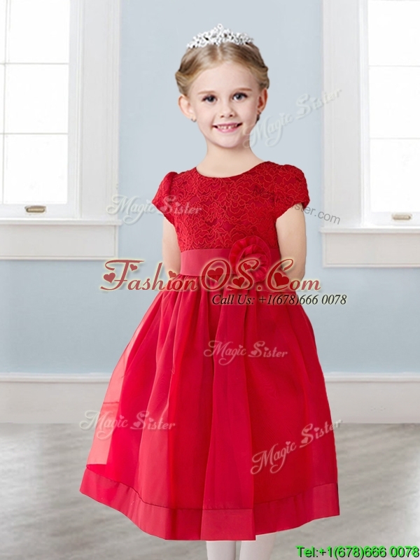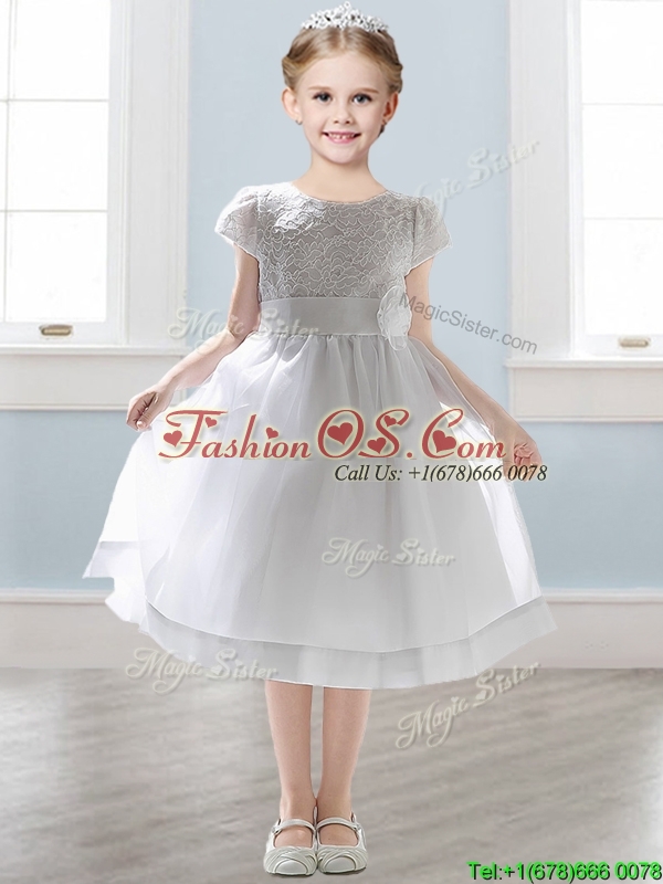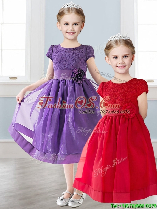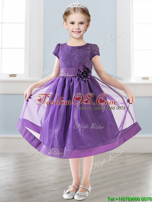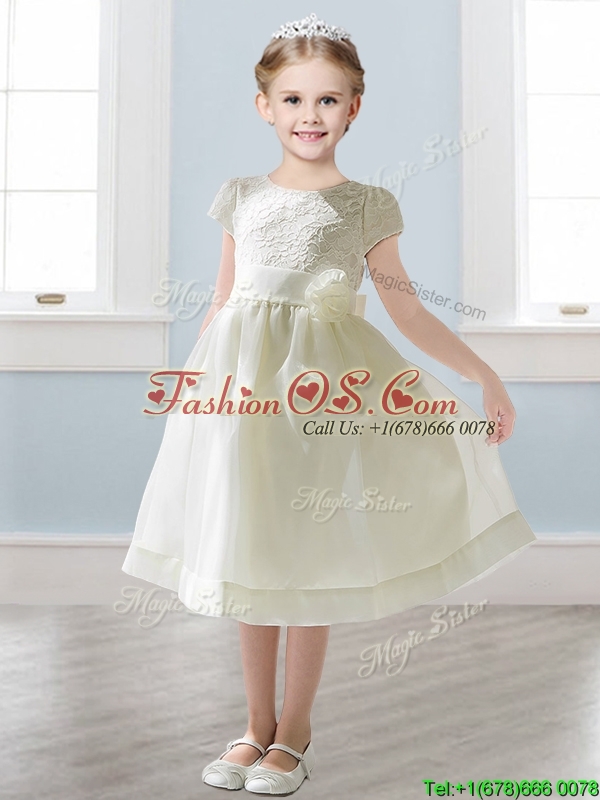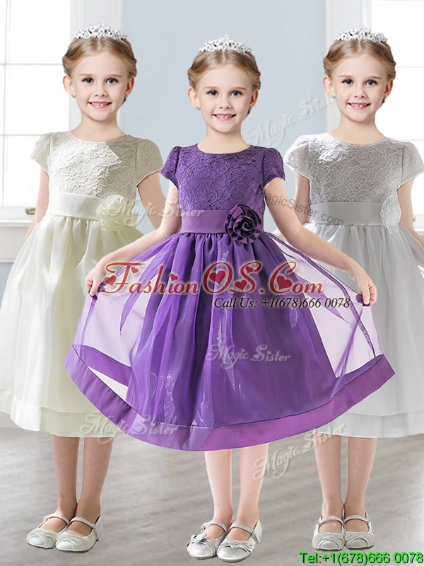 Wonderful Scoop Short Sleeves Little Girl Pageant Dress with Appliques and Lace