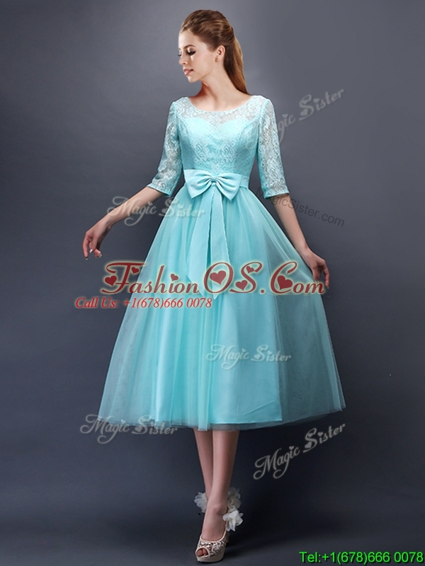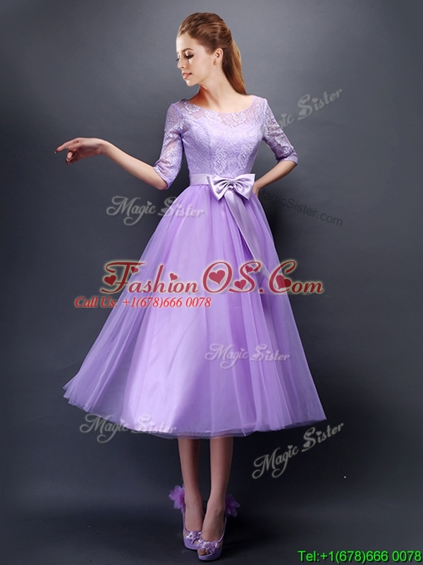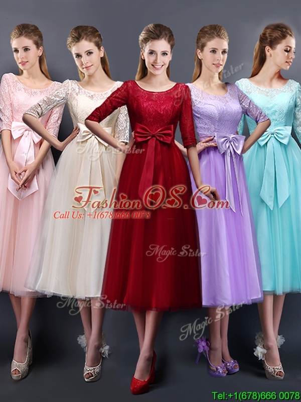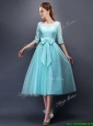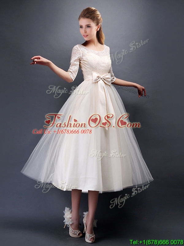 Home >  Special Occasion Dresses >  Cheap Dama Dresses > Wonderful See Through Scoop Half Sleeves Dama Dress with Bowknot