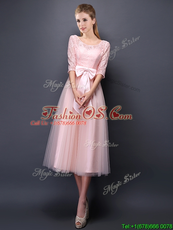 Wonderful See Through Scoop Half Sleeves Dama Dress with Bowknot