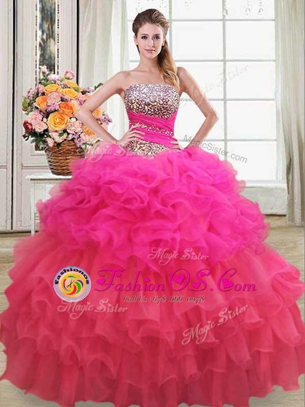 Wonderful Sequins Ruffled Floor Length Multi-color Quinceanera Gowns Strapless Sleeveless Lace Up