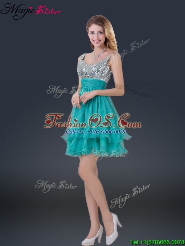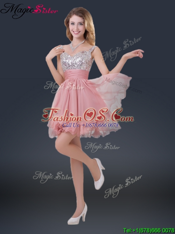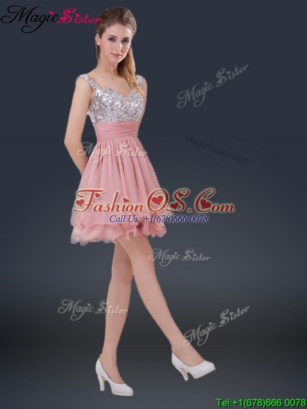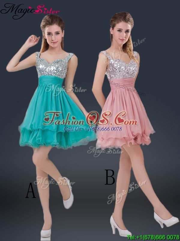 Wonderful Short Straps Paillette Bridesmaid Dresses for Summer