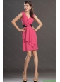 Wonderful Short V Neck Ruching and Belt Prom Dresses