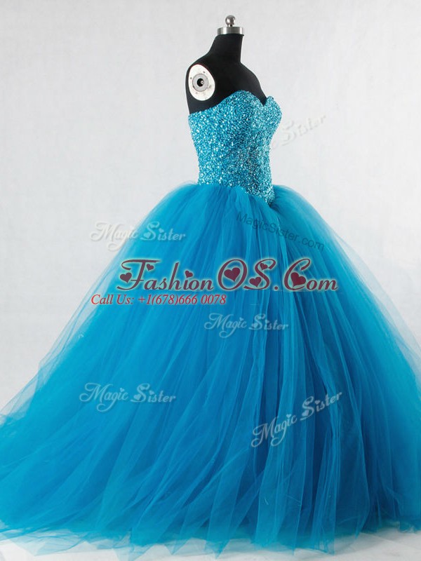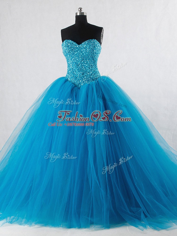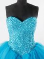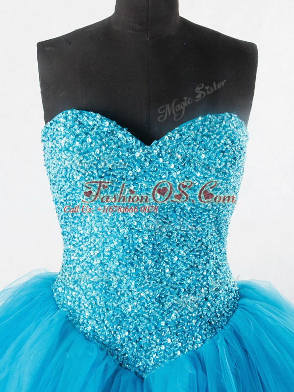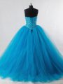 Wonderful Sleeveless Tulle Floor Length Lace Up Ball Gown Prom Dress in Baby Blue with Beading