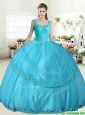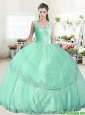 Wonderful Straps Apple Green Quinceanera Dress with Beading and Appliques
