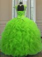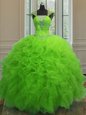 Wonderful Straps Cap Sleeves Floor Length Beading and Ruffles and Sequins Lace Up 15th Birthday Dress
