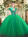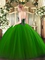 Wonderful Sweetheart Sleeveless Sweet 16 Dresses Floor Length Beading Turquoise Tulle