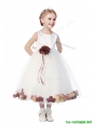 Wonderful Tulle Scoop Flower Girl Dress with Hand Made Flowers and Appliques