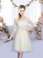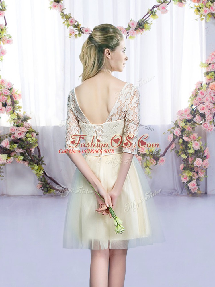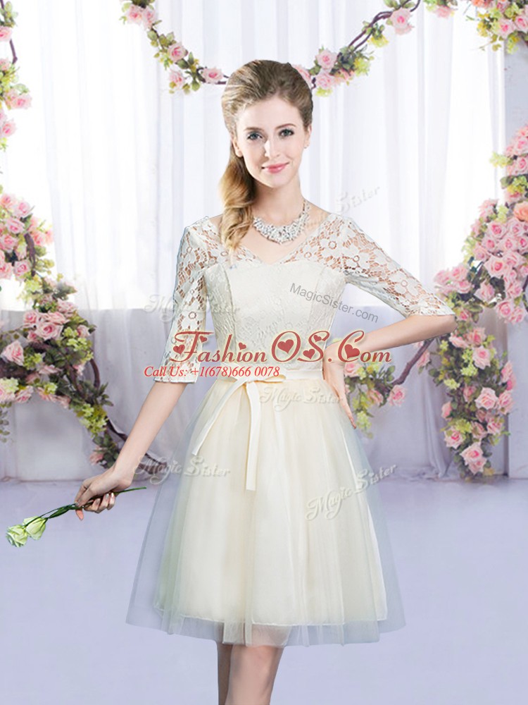 Home >  Bridesmaid Dresses >  Perfect Bridesmaid Dresses > Wonderful V-neck Half Sleeves Tulle Wedding Guest Dresses Lace and Bowknot Lace Up