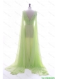 Wonderful Watteau Train Yellow Green Prom Dresses with Ruching and Pleats