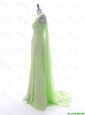 Home >  Prom Dresses >  New Arrivals > Wonderful Watteau Train Yellow Green Prom Dresses with Ruching and Pleats