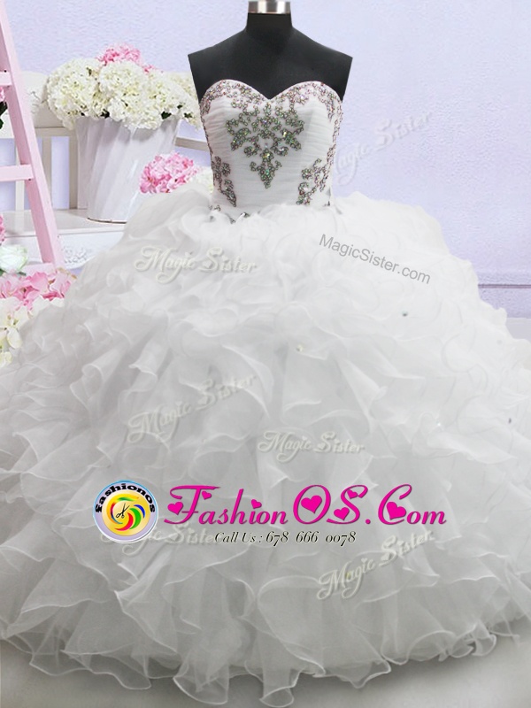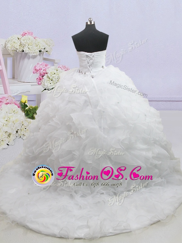 Home >  Wedding Dresses >  Perfect Wedding Dresses > Wonderful White Ball Gowns Sweetheart Sleeveless Organza With Brush Train Lace Up Beading and Ruffled Layers Wedding Dress