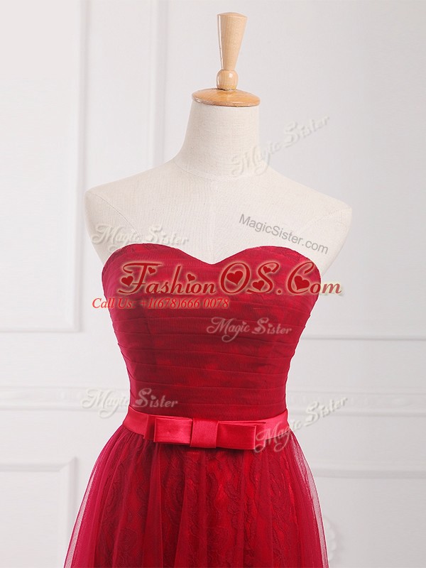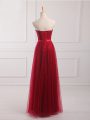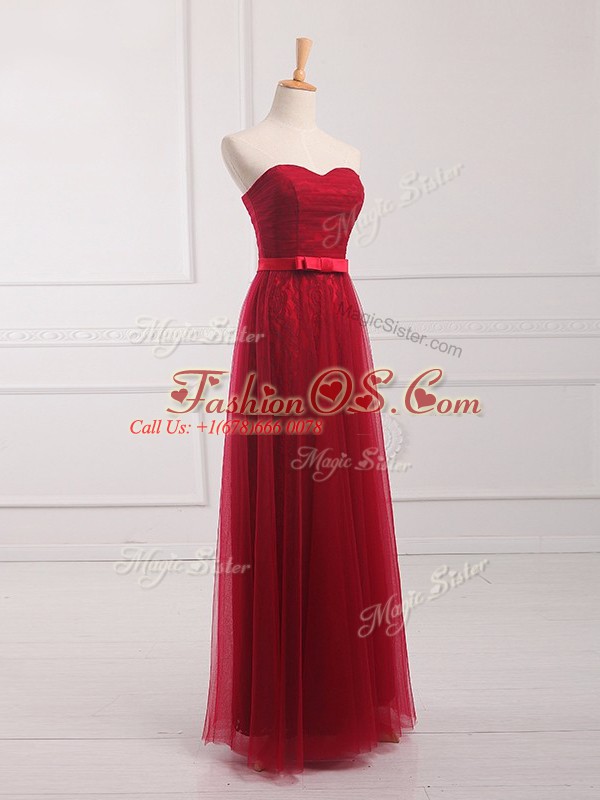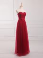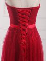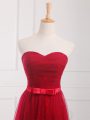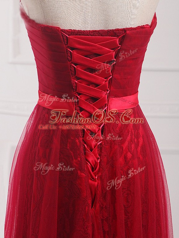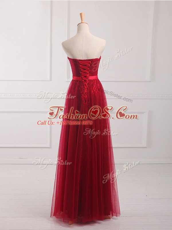 Wonderful Wine Red Tulle and Lace Lace Up Quinceanera Dama Dress Sleeveless Floor Length Belt