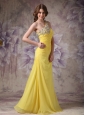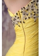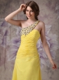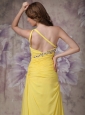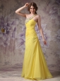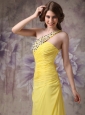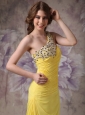 Home >  Evening Dresses > Wonderful Yellow Column One Shoulder Evening Dress Chiffon Ruch And Beading Floor-length