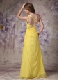 Wonderful Yellow Column One Shoulder Evening Dress Chiffon Ruch And Beading Floor-length