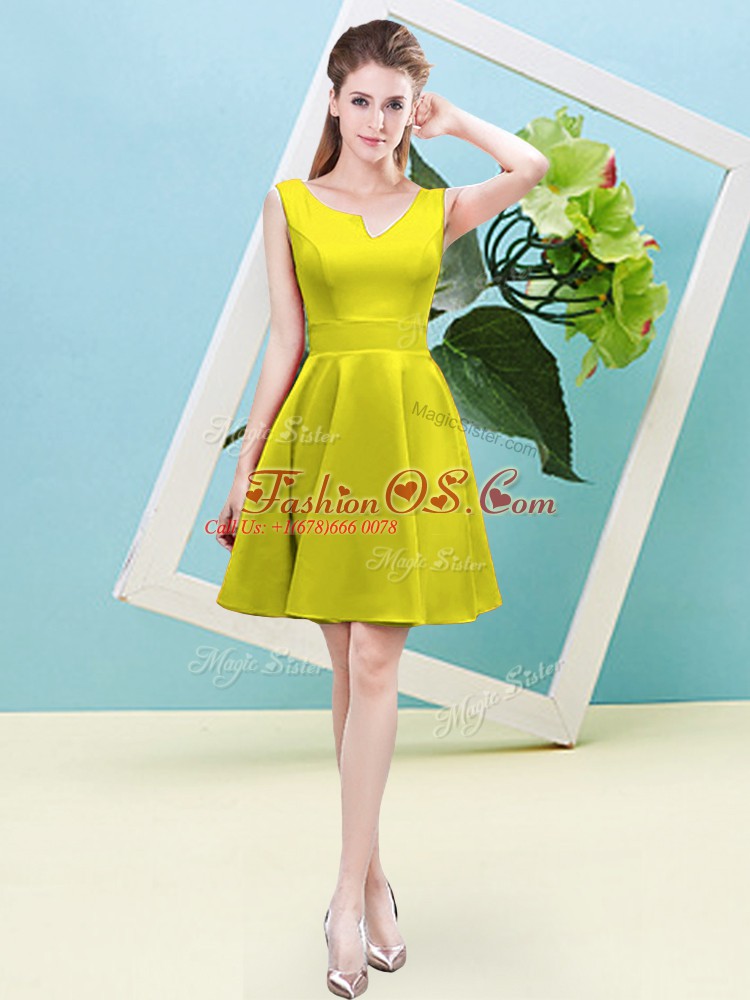 Wonderful Yellow Sleeveless Satin Zipper Damas Dress for Prom and Party and Wedding Party