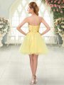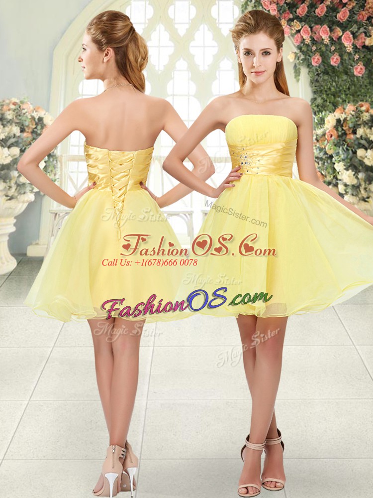 Yellow A-line Beading Lace Up Organza Sleeveless Mini Length