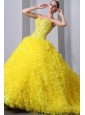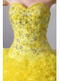 Home >  Quinceanera Dresses >  Pretty Quinceanera Dresses > Yellow A-Line / Princess Sweetheart Beading and Ruffles Quinceanea Dress Brush Train Organza