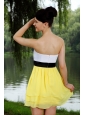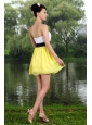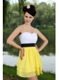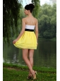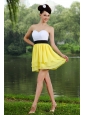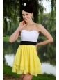 Yellow and White Empire Sweetheart Prom / Homecoming Dress Chiffon Sash Mini-length
