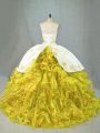 Home >  Quinceanera Dresses >  Clearance Quinceanera Dresses > Yellow Ball Gowns Satin and Organza Sweetheart Sleeveless Beading and Embroidery and Ruffles Lace Up Quinceanera Gown Brush Train