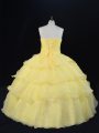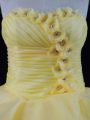 Home >  Quinceanera Dresses >  Perfect Quinceanera Dresses > Yellow Ball Gowns Sweetheart Sleeveless Organza Floor Length Lace Up Hand Made Flower Quinceanera Dresses