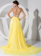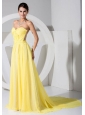 Yellow Chiffon Sweetheart Neckline Brush Train Prom Dress 2013