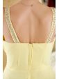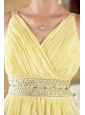 This romantic yellow prom dress dropped naturallly and characterd with a V-neckline in the front that you will looks sexy yet decent when you wear it.Heavily beaded on the wide waistband modifites your charming figure and same beadings on the back strps to complement with each other.You will be the shinning star when you go out in it.