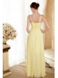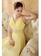 Home >  Prom Dresses >  Beautiful Prom Dresses > Yellow Column / Sheath V-neck Floor-length Chiffon Beading and Ruch Prom / Evening Dress