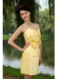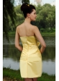 Yellow Column Strapless Prom / Homecoming Dress Satin Bowknot Mini-length