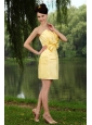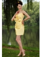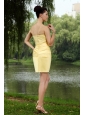 Home >  Prom Dresses >  Short Prom Dresses > Yellow Column Strapless Prom / Homecoming Dress Satin Bowknot Mini-length