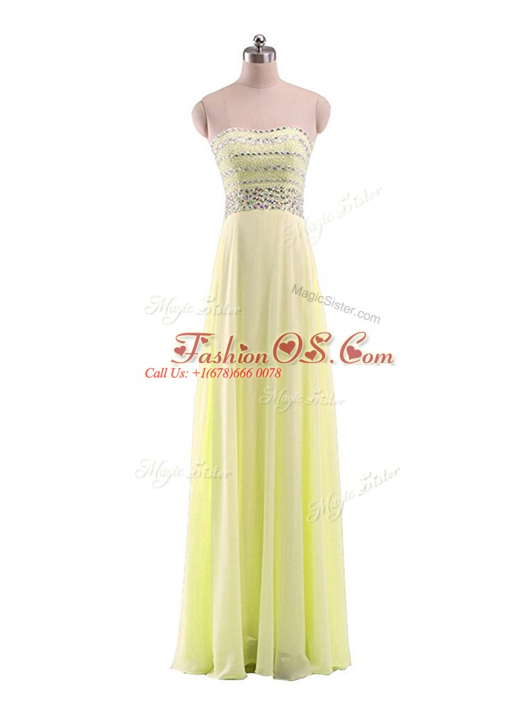 Yellow Empire Beading Prom Gown Zipper Chiffon Sleeveless Floor Length