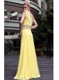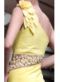 Yellow Empire One Shoulder Beading Prom / Pageant Dress