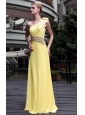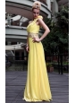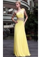 Yellow Empire One Shoulder Beading  Prom / Pageant Dress
