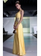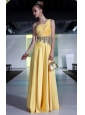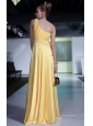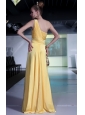 Home >  Prom Dresses >  Discount Prom Dresses > Yellow Empire One Shoulder Brush Train Chiffon Beading and Ruch Prom / Graduation Dress