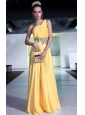 Yellow Empire One Shoulder Brush Train Chiffon Beading and Ruch Prom / Graduation Dress